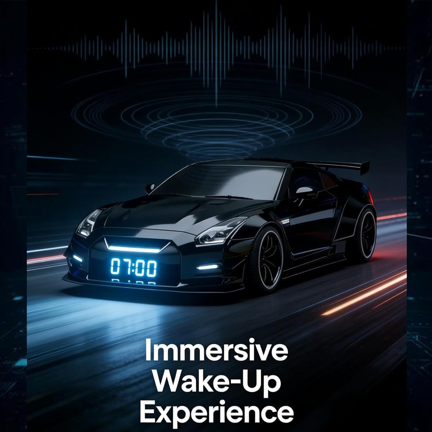 🏁Sleek Super Car Alarm Clock - Crystal Clear LED Display Modern Sports Car Nightstand Clock for Home Decor